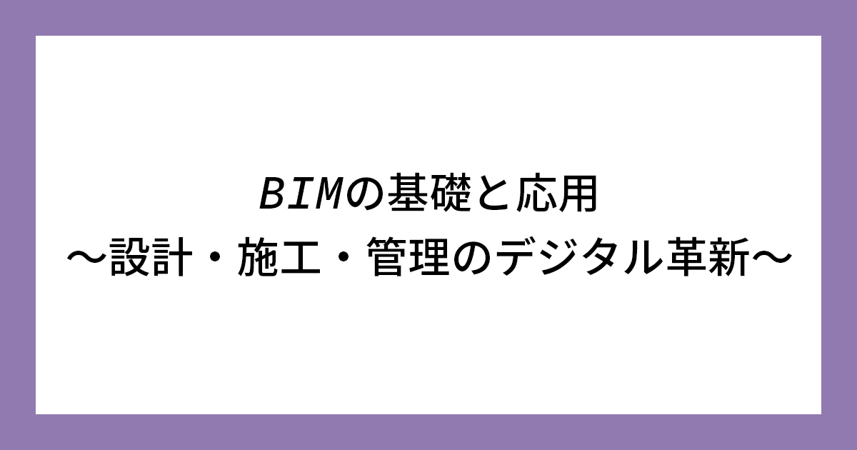 BIMの基礎と活用~設計・施工・管理のデジタル革新~【準備中】