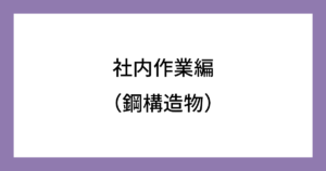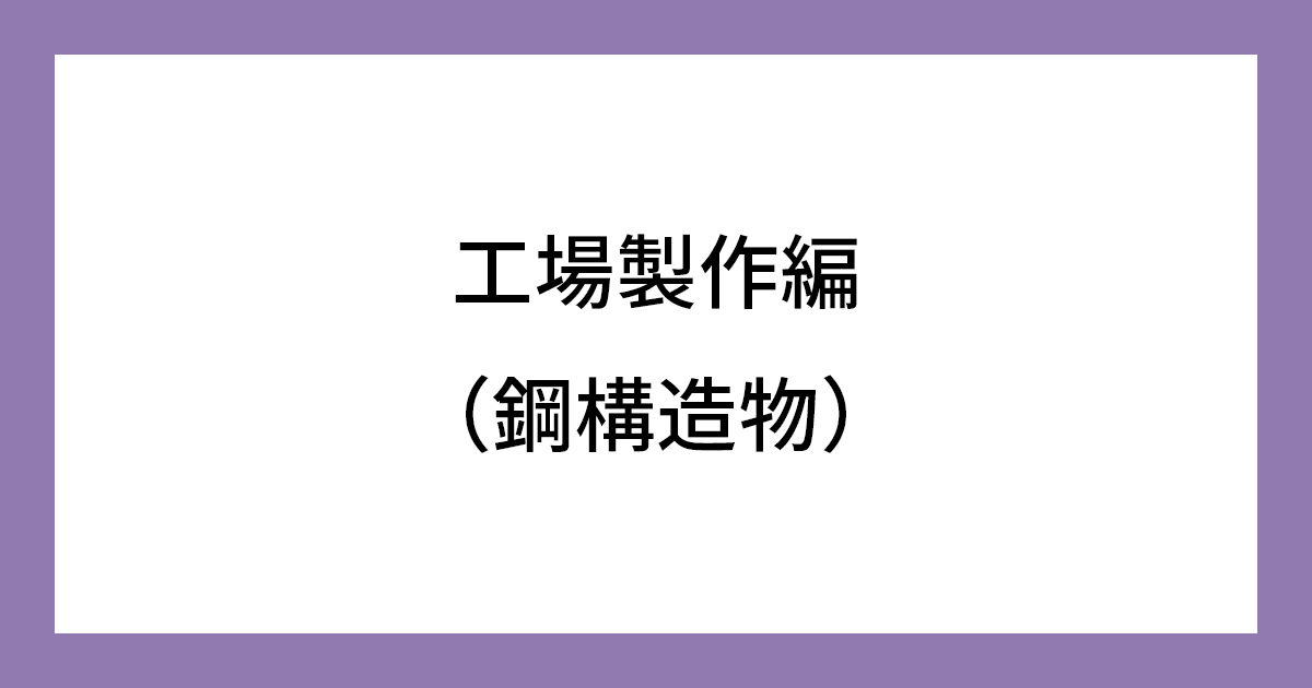 目次材料の入荷受入れ 車両からの荷下ろし(天井クレーン操作) 納品伝票数量と実物数の照合 材料の仕分け(型鋼・板) 材質やサイズごとの仕分け(型鋼) 板厚や材質ごとの仕分け(板) 鉄骨組立作業(罫書き) 加工図や詳細単品図から内容を読み取る 図面を見ながら実物に罫書きを入れていく 鉄骨組立作業(部材組立) 詳細単品図を見ながら部材取付を行う 位置を固定する為、組立溶接を行う 組立チェック 取付間違いや取付忘れがないか、詳細単品図を見ながら寸法チェックを行う 溶接作業 組立品に溶接を行い部材を固定する 溶接機の扱い方、溶接材料、溶接の仕方 製品検査作業 溶接完了製品を寸法測定をして記録する 超音波探傷器を使い、溶接内部を調べ記録する 塗装作業 錆止め塗料を製品に2回塗装をする 十分な膜厚が取れているか検査をする 鋼構造物学部 勤次郎マニュアル【PDF】 鋼構造物:社内作業編【準備中】 この記事を書いた人 水野源太 関連記事 鋼構造物:最新の取り組み内容【準備中】 2025年3月7日 鋼構造物:社内作業編【準備中】 2025年3月7日 コメント コメントする コメントをキャンセルコメント ※ 名前 ※ メール ※ サイト 次回のコメントで使用するためブラウザーに自分の名前、メールアドレス、サイトを保存する。