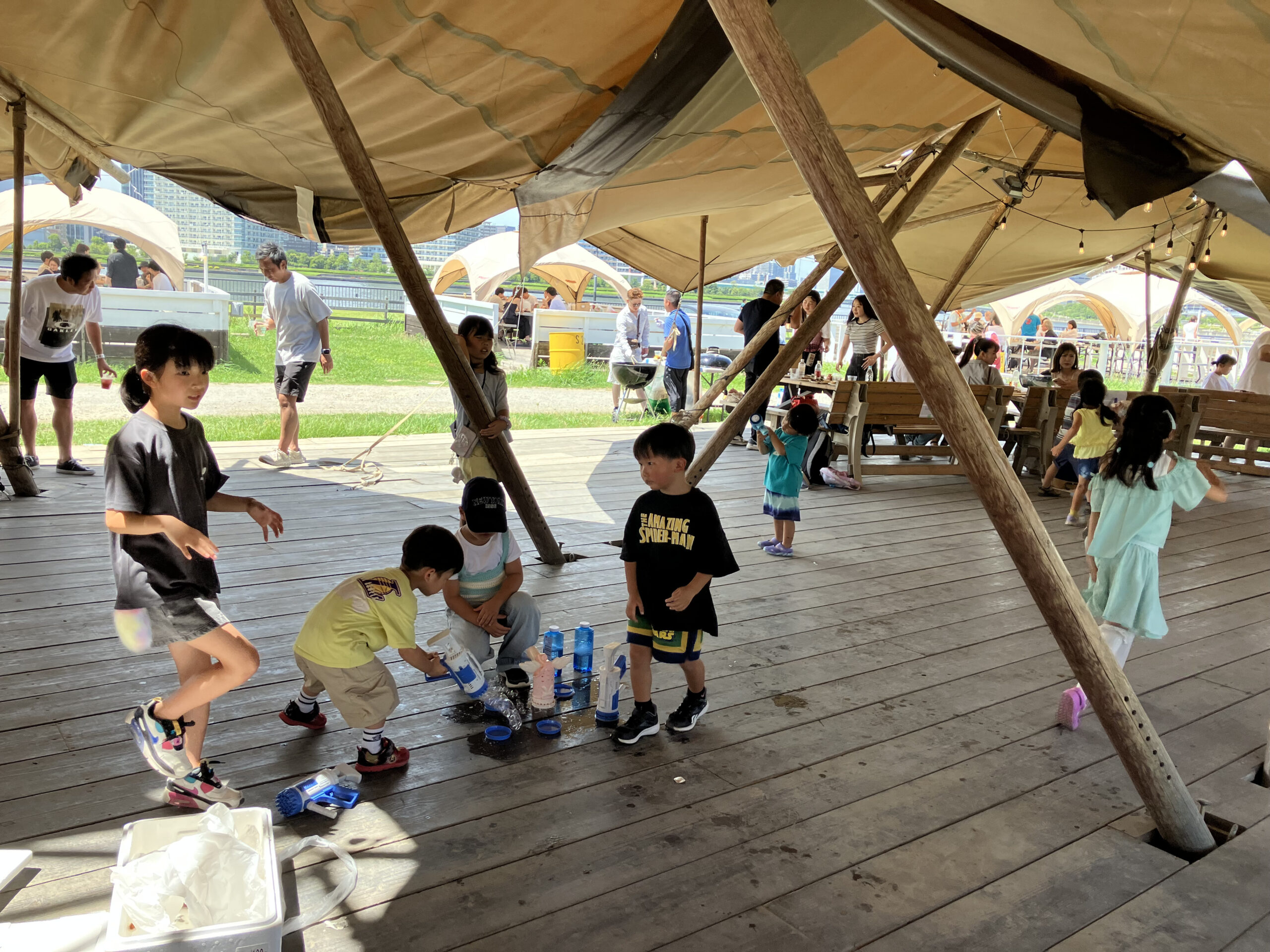 子どもたちはシャボン玉で遊びながら、元気いっぱいに夏の思い出を作っていました。