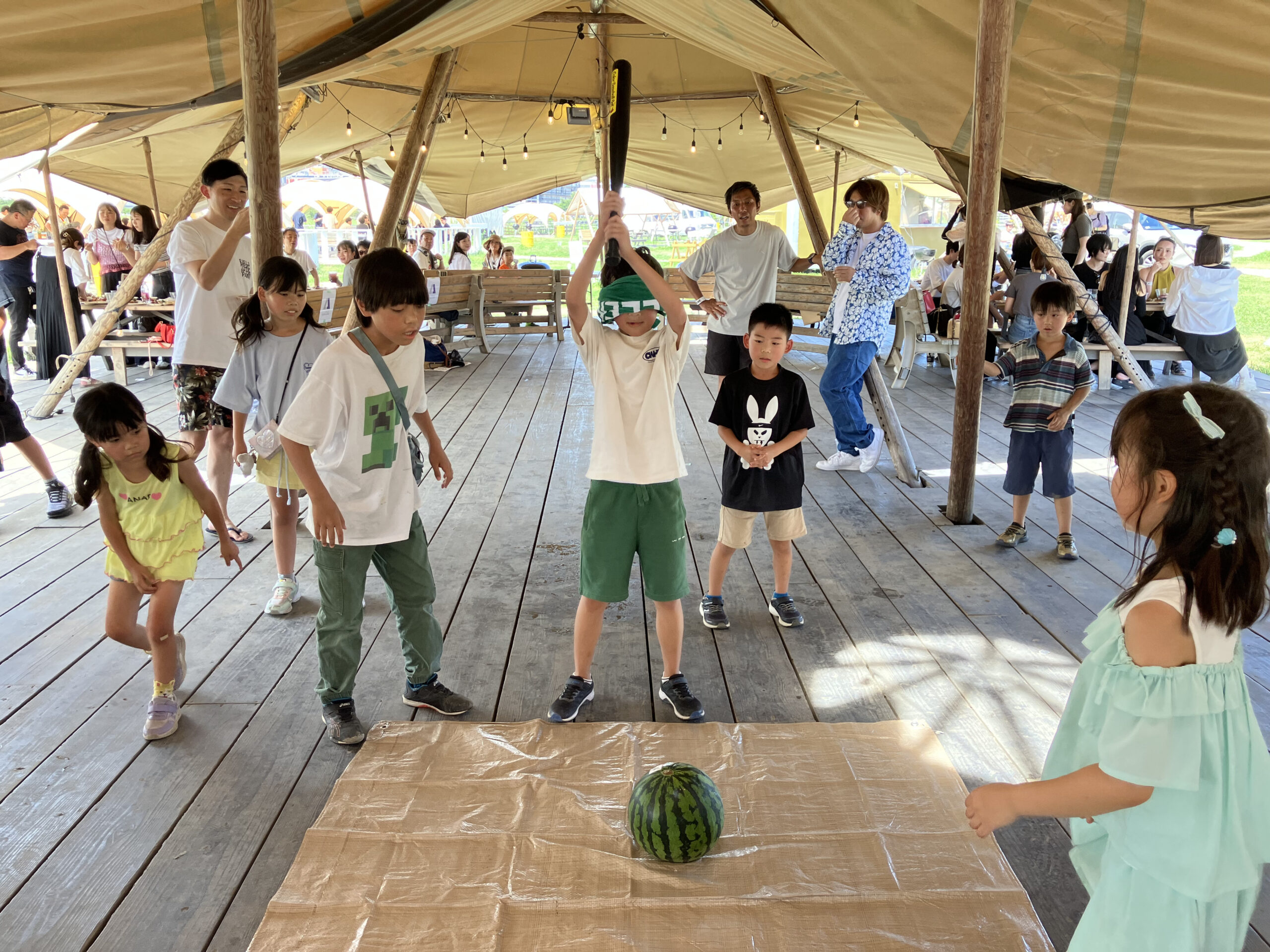 BBQの合間には恒例のスイカ割りが行われました!大きなスイカはとても甘くて大好評。