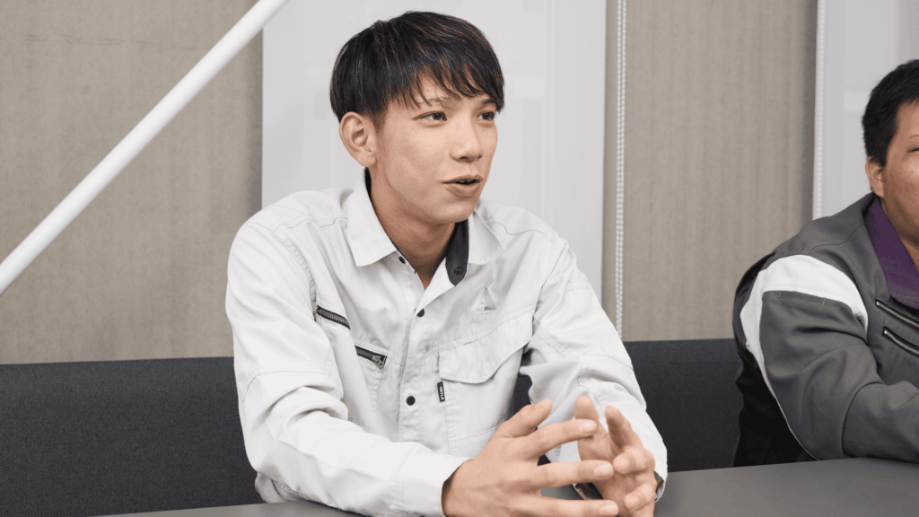 多和田さん: 僕は求人票を見たのが最初です。でも、面接前に足場を組んでいる実際の現場を見学させてもらった時、素人目にも分かるくらい安全基準が厳しく、徹底されていると感じたんです。これが大きな決め手になりました。