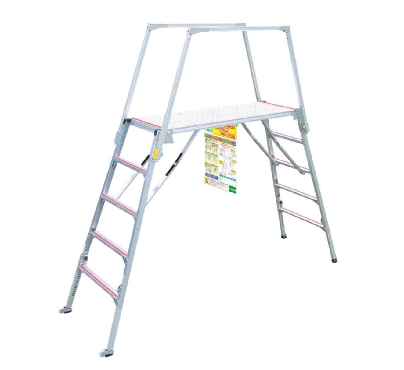 足場を組むほど大掛かりではない作業に対応し、脚立よりも安定し、作業効率も安全性も高いのが特徴となっています。