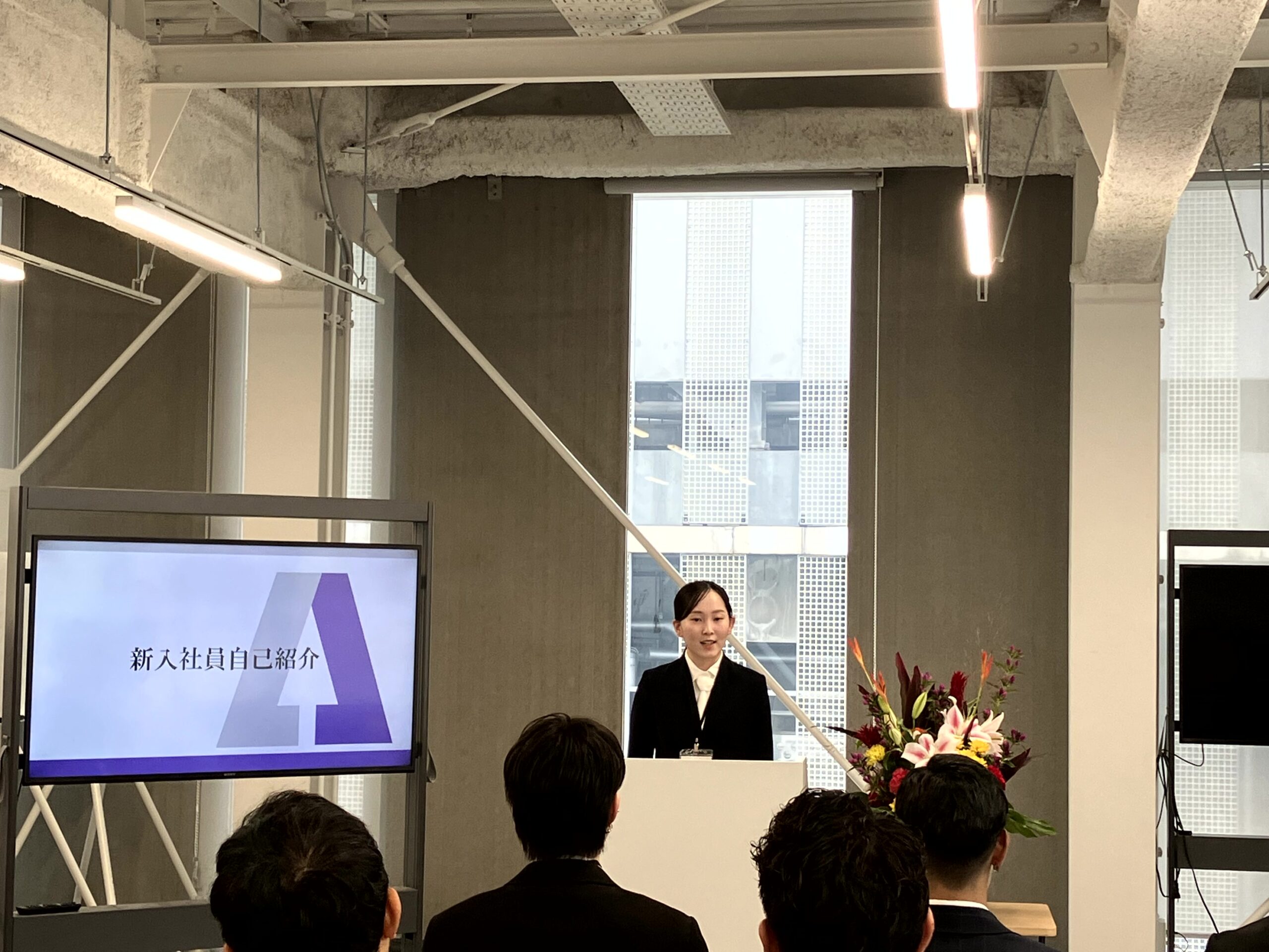 その後、新入社員による自己紹介が行われ、学生生活での経験や入社後の抱負が語られました。