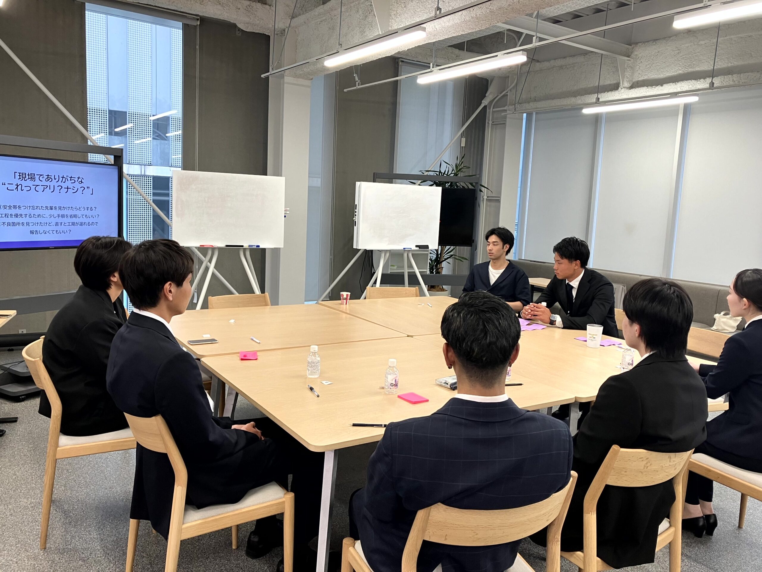 さらに、先輩社員との座談会では現場での体験談を直接聞くことができ、現場で起こり得る状況を題材にしたクイズ形式のワークでは、どう対応すべきかを一緒に考えるなど、実践的な学びの時間となりました。